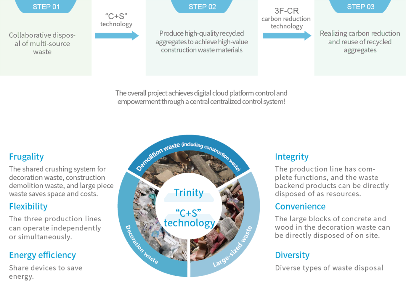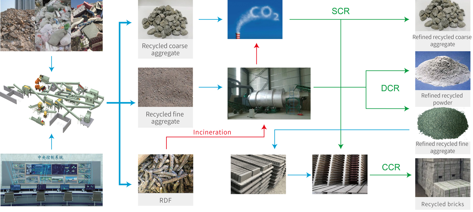 Optimal separating and Carbon-reduction Recycling Technology for C&D waste